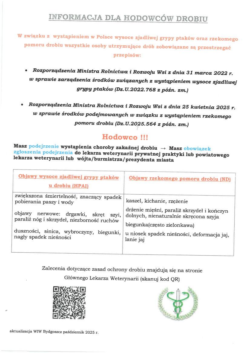 INFORMACJA DLA HODOWCÓW DROBIU