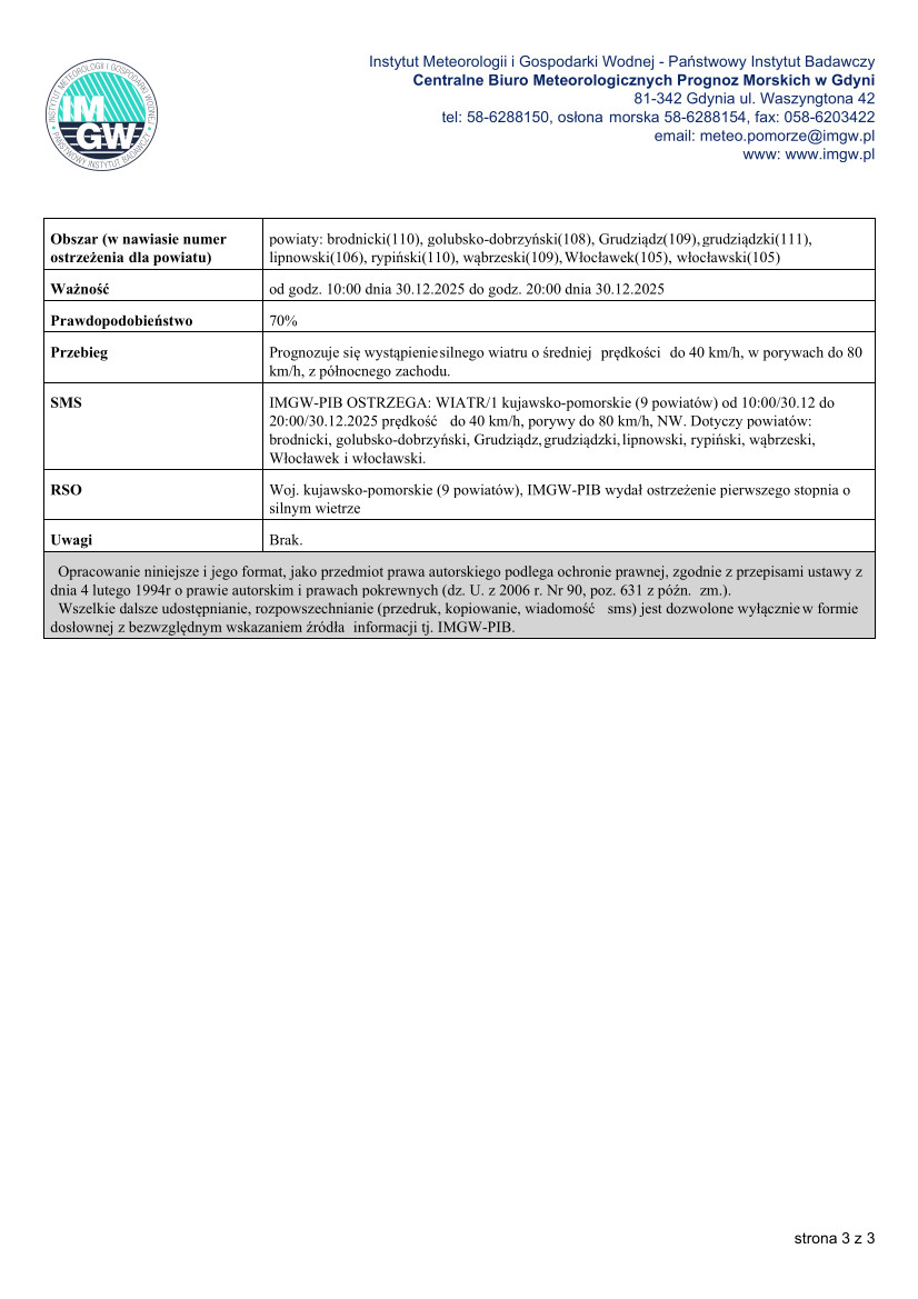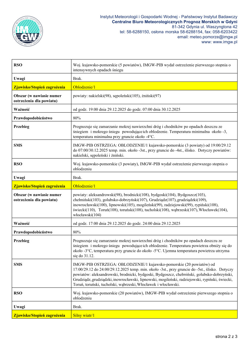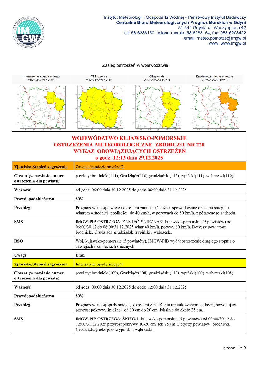 Ostrzeżenie meteorologiczne - Intensywne opady śniegu 29.12.2025