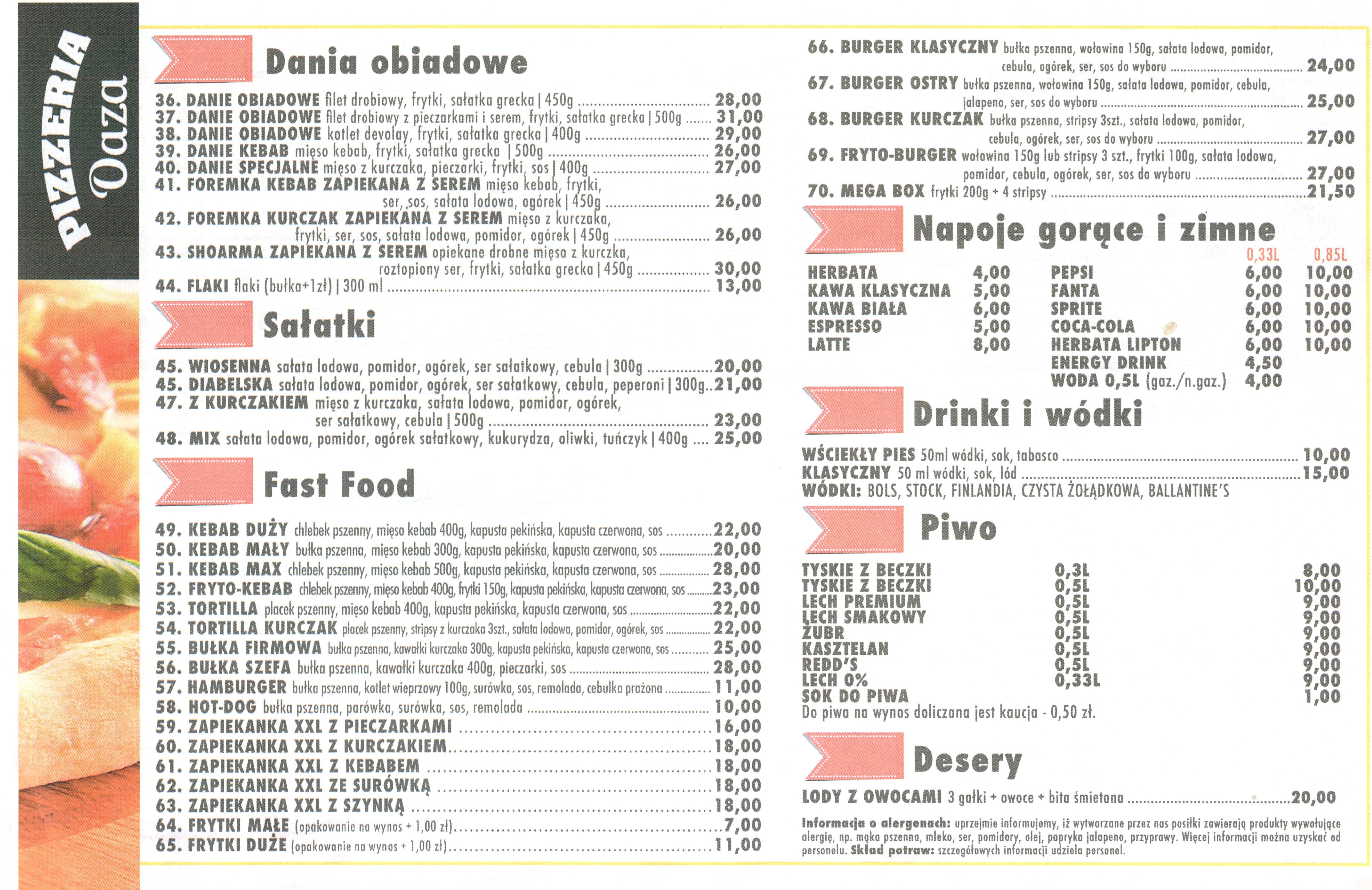DO DAŃ NA WYNOS DOLICZAMY OPŁATĘ ZA OPAKOWANIE 2,00 ZŁ