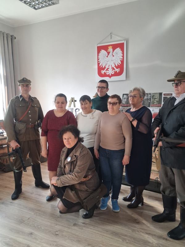10 marca nasi uczestnicy wraz z opiekunami złożyli wizytę w BiOK w Piotrkowie Kujawskim, by wziąć udział w spotkaniu z lokalną grupą rekonstrukcyjną z okazji Narodowego Dnia Pamięci Żołnierzy Wyklętych. Mogliśmy wówczas obejrzeć wystawę biogramów, książek i artefaktów związanych z sylwetkami Żołnierzy Wyklętych, a także wysłuchać opowiadań na ich temat. Najwięcej emocji wśród naszych podopiecznych wzbudziła możliwość dotknięcia i potrzymania broni z tamtego okresu. Jesteśmy wdzięczni Organizatorom za zaproszenie do udziału w tak ciekawym wydarzeniu.