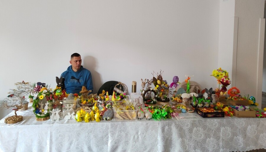 Okres przed świętami Wielkanocnymi jest zawsze w życiu naszej społeczności pracowitym, ale bardzo miłym czasem. Mamy wtedy możliwość podczas wystaw, kiermaszów i jarmarków zaprezentować efekty terapii zajęciowej prowadzonej z naszymi podopiecznymi. Bogaty dorobek wytworów rękodzieła artystycznego o tematyce wielkanocnej co roku cieszy się zainteresowaniem oglądających i kupujących. Wystawy te są również okazją do integracji naszych podopiecznych z lokalną społecznością. W tym roku gościliśmy z wystawami w okolicznych szkołach w Morzyczynie, w Dębołęce, w Byczu, w Topólce i w Nowym Dworze. Miejsce wystawowe udostępniono nam również w Szpitalu Powiatowym w Radziejowie. Dziękujemy bardzo Dyrekcjom wymienionych placówek za przychylność.