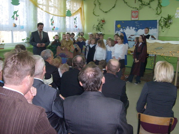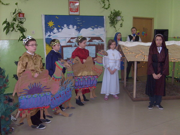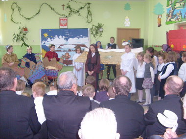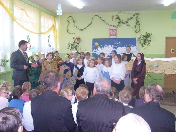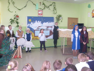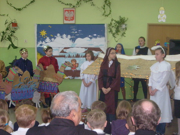 Scenariusz został opracowany na podstawie biblijnego opisu narodzenia Chrystusa na tle kolęd i pastorałek. Uczestnicy wysłuchali orędzia o narodzeniu Jezusa w wykonaniu uczniów. Młodzi aktorzy postarali się, by wszyscy przeżyli ze wzruszeniem radosną nowinę o przyjściu Zbawiciela na świat. Widzowie gorąco dziękowali dzieciom za wzruszające chwile. Następnie głos zabrali zaproszeni goście. Wszyscy składali najlepsze życzenia nauczycielom i uczniom, wyrażając podziw dla umiejętności młodych aktorów.