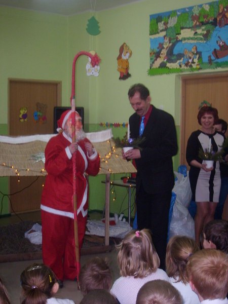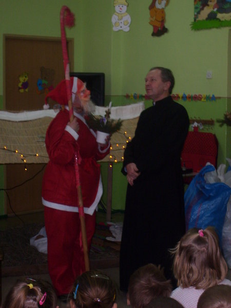 Po wieczerzy miała miejsce miła niespodzianka. Do zebranych dzieci i miłych gości przybył św. Mikołaj. Wszyscy zostali obdarowani. Radości nie było końca. Wspólne kolędowanie dopełniło uroczystość. Ten wspaniały dzień na długo pozostanie w naszej pamięci. W Uroczystość Trzech Króli uczniowie przedstawią jasełka również w kościołach w Orlu i Kozach.