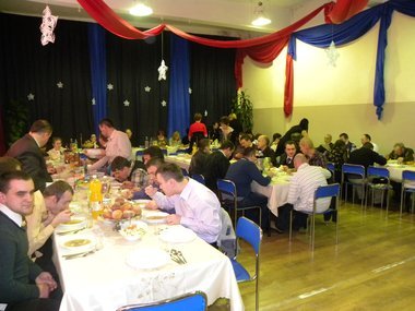 Na stołach królowały karnawałowe potrawy - m.in. bigos, żurek z białą kiełbasą, pączki, faworki, itp. Również prawdziwą "ucztę" dla spragnionych tańca zaserwował zespół muzyczny UNISON, który każdym utworem podrywał wszystkich do wspólnej zabawy.