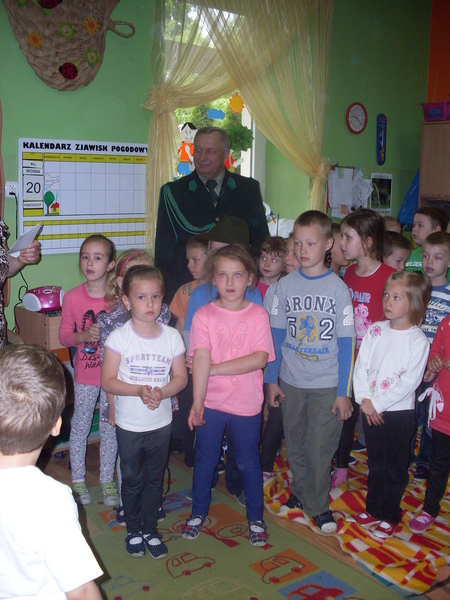 Spotkanie było jednym z elementów współpracy prowadzonej od trzech lat. Myśliwi i przedszkolacy realizują program edukacji ekologiczno – łowieckiej „Myśliwi - dzieciom, dzieci-zwierzętom”. Przedszkolaki w bezpośredniej współpracy z myśliwymi uczą się praktycznie jak szanować przyrodę, poznawać florę i faunę naszego pięknego regionu. W bieżącym roku szkolnym odbyły się wspólne wyjazdy do lasu na zimowe dokarmianie zwierząt, wypuszczanie ptactwa łownego. Realizacja programu corocznie przynosi wymierne efekty w postaci wzrostu świadomości ekologicznej przedszkolaków. Poszanowania przyrody należy uczyć od najmłodszych lat, kiedy umysł dziecka jest chłonny wiedzy. Dzieci chcą wszystko wiedzieć, wszystkiego dotknąć, wszystko zobaczyć. Właśnie wtedy jest czas na to, aby rozbudzić w nich zainteresowanie światem przyrody i wytworzyć właściwy do niego stosunek. Fundamenty przyszłych działań, styl życia dzieci w czekającej ich przyszłości, kształtują się od najmłodszych lat. Już w tym okresie rozwoju wyrabiają się w nich pewne nawyki. Organizowany w tym czasie jak najczęstszy, bezpośredni kontakt dziecka z naturą, rzetelne przekazywanie informacji na temat stanu naszego środowiska naturalnego oraz uświadamianie przedszkolakom zagrożeń jakie niesie ze sobą współczesna cywilizacja, nabierają szczególnego znaczenia.