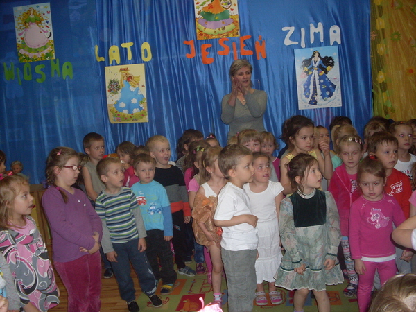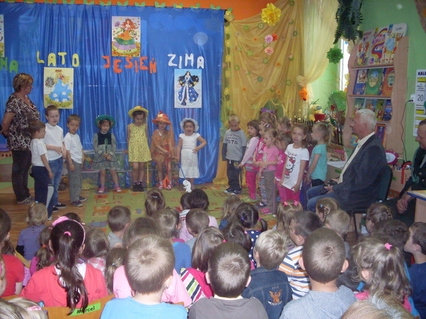 Goście wraz z dziećmi z grup „Misie”, „Jagódki” i „Motyle” obejrzeli przedstawienie pt. „Cztery pory roku” w wykonaniu „Biedroneczek”. Przedszkolaki miały też okazję wysłuchać wierszy ze zbioru „Muchomorek i przyjaciele” czytanych przez myśliwych. Panowie łowczy Zdzisław Kaźmierczak i Jan Wojciechowski odpowiadali na pytania dotyczące mieszkańców lasu i zadań myśliwego. Wesołym przerywnikiem spotkania była zabawa słuchowa pt. „Czerwony Kapturek” w którą zaangażowali się zaproszeni goście. Wcielanie się w role bohaterów znanej wszystkim bajki sprawiło dzieciom i dorosłym ogromną frajdę.