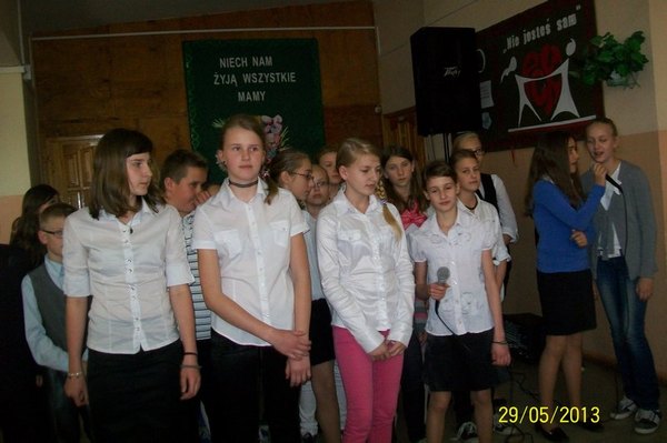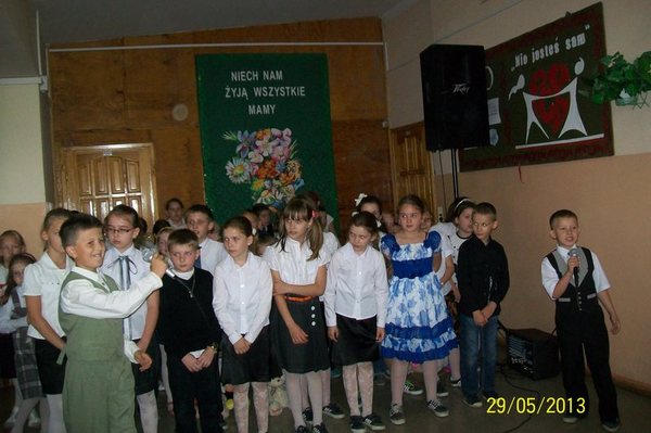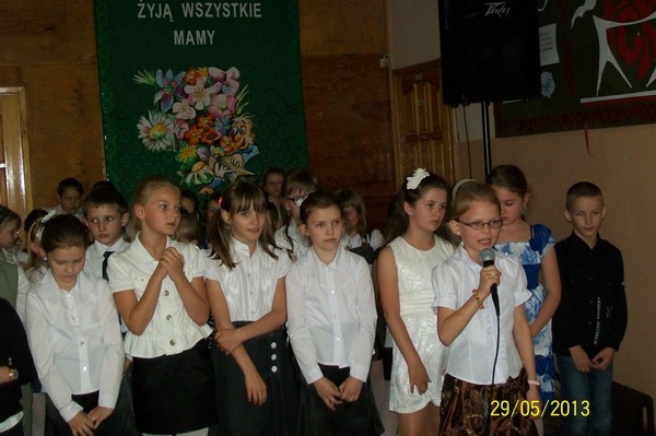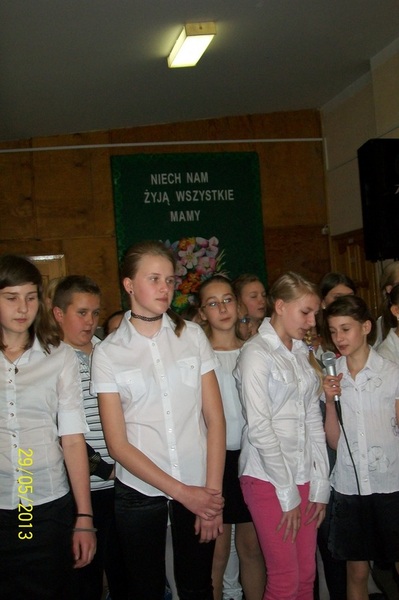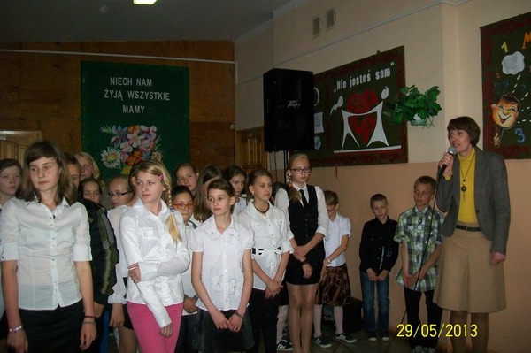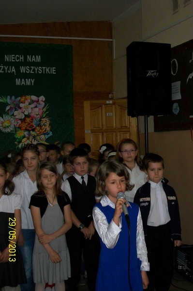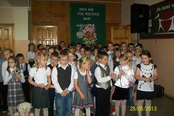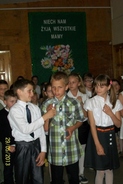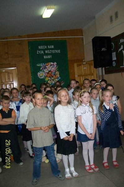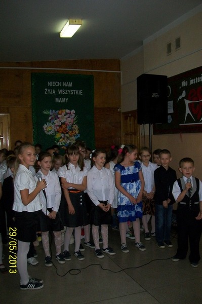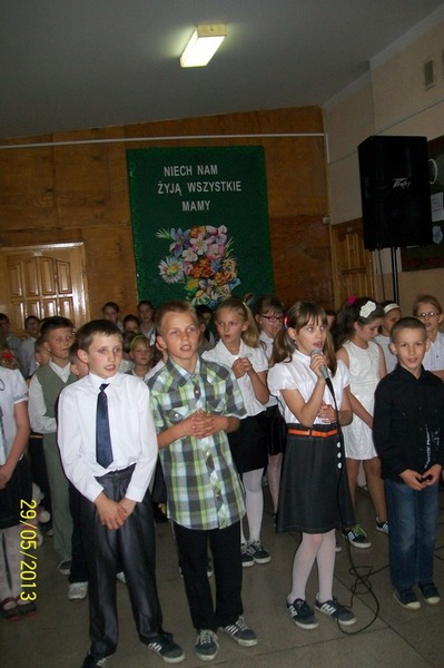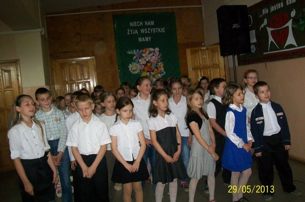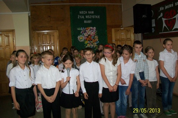 Dnia 29 maja 2013 roku w naszej szkole odbyła się uroczystość Dnia Matki. Na uroczystość przybyli: pani dyrektor, mamy, społeczność uczniowska oraz wszyscy nauczyciele. Dla wszystkich był to dzień pełen wrażeń. Uroczystość zainaugurowała pani dyrektor witając wszystkich przybyłych gości.