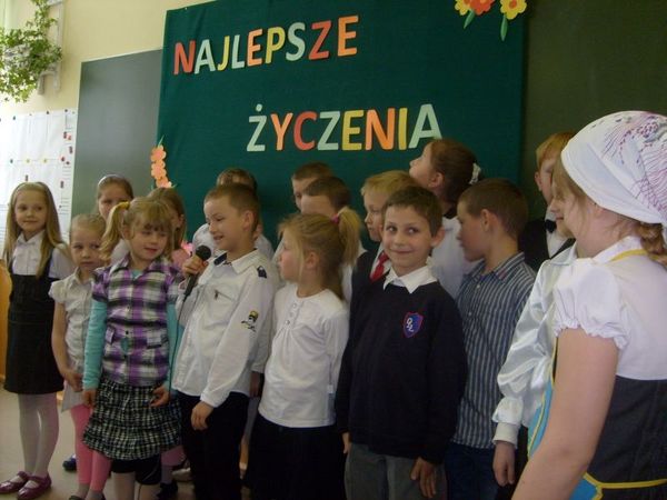 Dzieci z klas 0-3 przedstawiły program artystyczny- śpiewały piosenki oraz recytowały wiersze. Uczniowie nie zapomnieli o drobnych upominkach, ręcznie wykonane kwiaty trafiły do każdej mamy, a tatusiowie otrzymali „ Certyfikaty Supertaty”. W takim dniu nie mogło zabraknąć wzruszeń. Kiedy dzieci składały życzenia, rodzice ukradkiem ocierali łzy. Rodzinny klimat nadała piosenka pt. „ Cudownych rodziców mam” .Uroczystość przebiegła w ciepłej i miłej atmosferze i na pewno na długo pozostanie w pamięci rodziców i dzieci.
