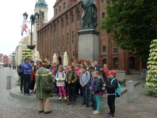 06.06.2013r. uczniowie Szkoły Podstawowej w Byczu uczestniczyli w wycieczce do Torunia -grodu Kopernika. Zwiedzanie miasta rozpoczęli od pomnika Mikołaja Kopernika, przy którym pan przewodnik opowiedział o historycznych dziejach miasta i życiu astronoma. Następnie udali się do Domu Legend Toruńskich- to połączenie interaktywnego muzeum i teatru. Uczniowie usłyszeli tam legendy związane z Toruniem. Na miejscu zwiedzili m.in. domek na drzewie, gdzie Krzyżacy w 1231 roku założyli swoją pierwszą warownię, próbowali zbudować samodzielnie Krzywą Wieżę, zadzwonić dzwonem Tuba-Dei oraz spróbować swoich sił we flisaczej walce na wiosła. Uczniowie odwiedzili również Teatr Baj Pomorski, w którym obejrzeli spektakl pt. „Najmniejszy Bal Świata”- „dowcipną instrukcję obsługi dziecka i rodzica, doskonały mariaż teatru z telewizją”. Główna bohaterka przedstawienia, Migawka odbywa podróż inicjacyjną, podczas której uczy się trudnej sztuki panowania nad swoimi emocjami, przede wszystkim zaś szanowania drugiego człowieka, okazywania mu uczuć i empatii. Na koniec jedzenie w McDonald’s i pyszne lody. Podróż powrotna minęła szybko i przyjemnie, wszyscy byli pełni wrażeń. Była to ciekawa lekcja historii.