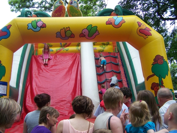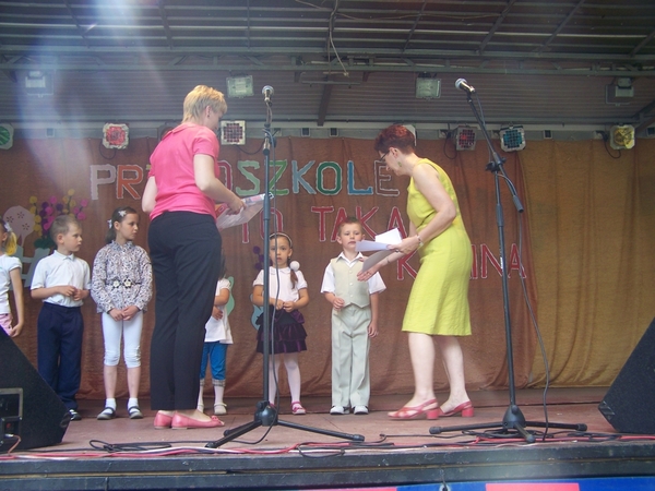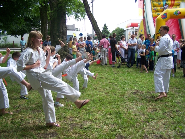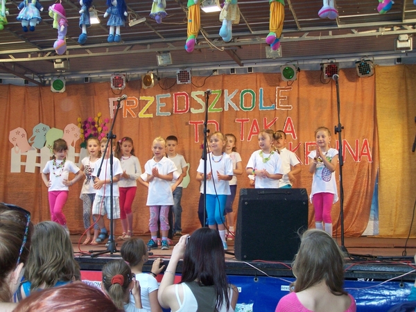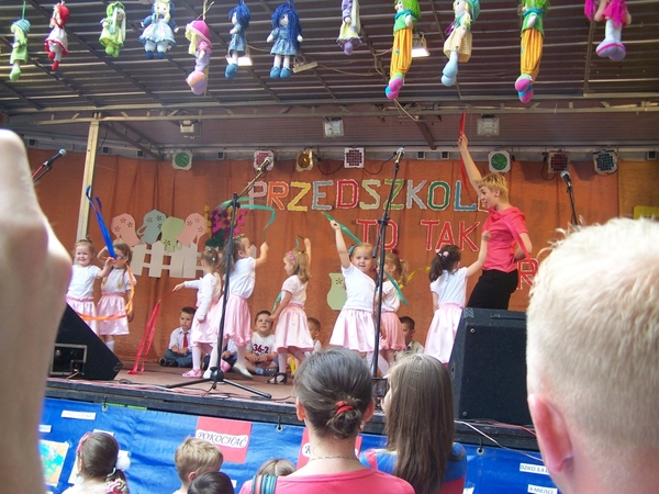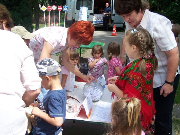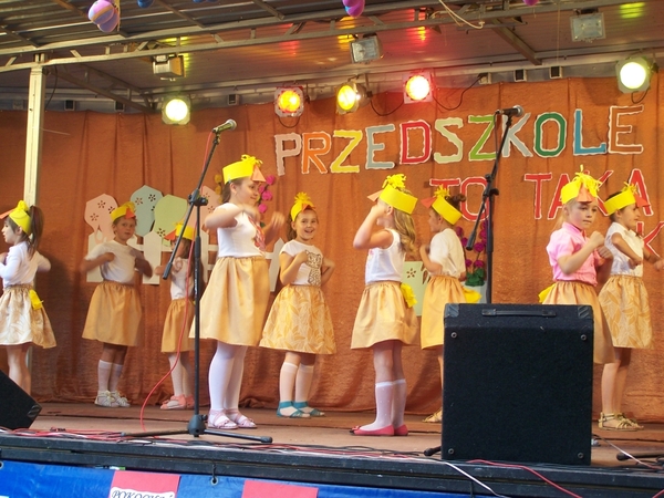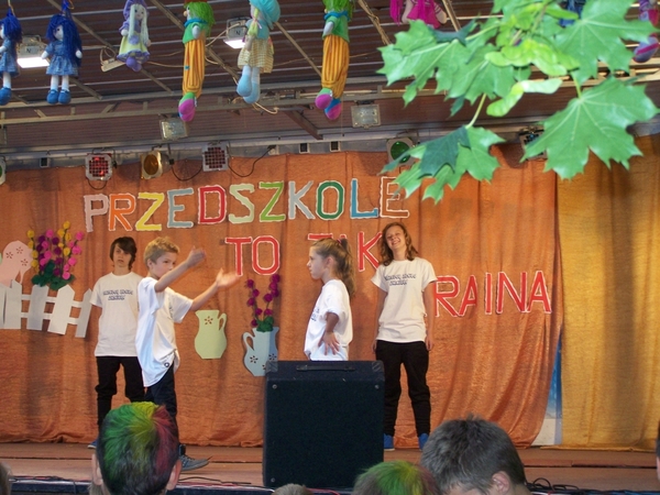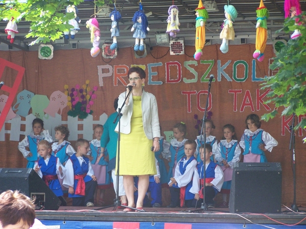 O 1400 nastąpiło uroczyste rozpoczęcie. Już po raz XIV Pani Renata Woźniak – dyrektor przedszkola powitała wszystkich i gorąco podziękowała sponsorom oraz rodzicom przedszkolaków za pomoc i wsparcie w zorganizowaniu tak dużej, środowiskowej imprezy. Po powitaniach i podziękowaniach na scenie pojawiły się najbardziej oczekiwane i oklaskiwane gwiazdy, czyli przedszkolaki. Dzieci ubrane w stroje ludowe zaprezentowały się w repertuarze kujawskich tańców i przyśpiewek. Po zakończonych występach, mali artyści rozbiegli się po całym terenie. Czekało na nich moc atrakcji dla ducha i ciała: bańki mydlane, szczudlarz, warsztaty cyrkowe, nauka w szachy i warcaby, spotkanie z myśliwymi, strażakami i policją. Spotkani. Funkcjonariusze z Wydziału Ruchu Drogowego Komendy Wojewódzkiej w Bydgoszczy zorganizowali dzieciom mini miasteczko drogowe. Atrakcji i wrażeń z tego tytułu było, co niemiara. Zainteresowanie dzieci wzbudzał policyjny motocykl i radiowóz, który do oglądania udostępnili funkcjonariusze z Komendy Powiatowej Policji w Radziejowie. Uwagę nie tylko dzieci, ale i dorosłych skupił na sobie pokaz karate w wykonaniu dzieci i młodzieży z Inowrocławskiego Klubu Karate sekcja Radziejów. Dla głodnych i zmęczonych maluszków po raz pierwszy przygotowany był kącik malucha. Tam mamy mogły nakarmić swoje maleństwa, przewinąć i odpocząć. Troszkę starsze dzieci zmęczone piknikowaniem korzystały z kącika majsterkowicza, gdzie popisywały się zdolnościami architektonicznymi (budowanie zamków) i kącika bajkowego, gdzie słuchały bajek wszyscy głodni i spragnieni tradycyjnie już mogli pożywić się i napić w przygotowanych przez rodziców oraz przedszkolną kuchnię stoiskach.