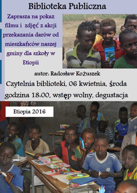 Tym samym informuję, że prezentacja z pokazem slajdów i filmu z akcji przekazania darów odbędzie się w czytelni biblioteki dnia 06 kwietnia o godzinie 18:00. Chętnych zapraszamy.
