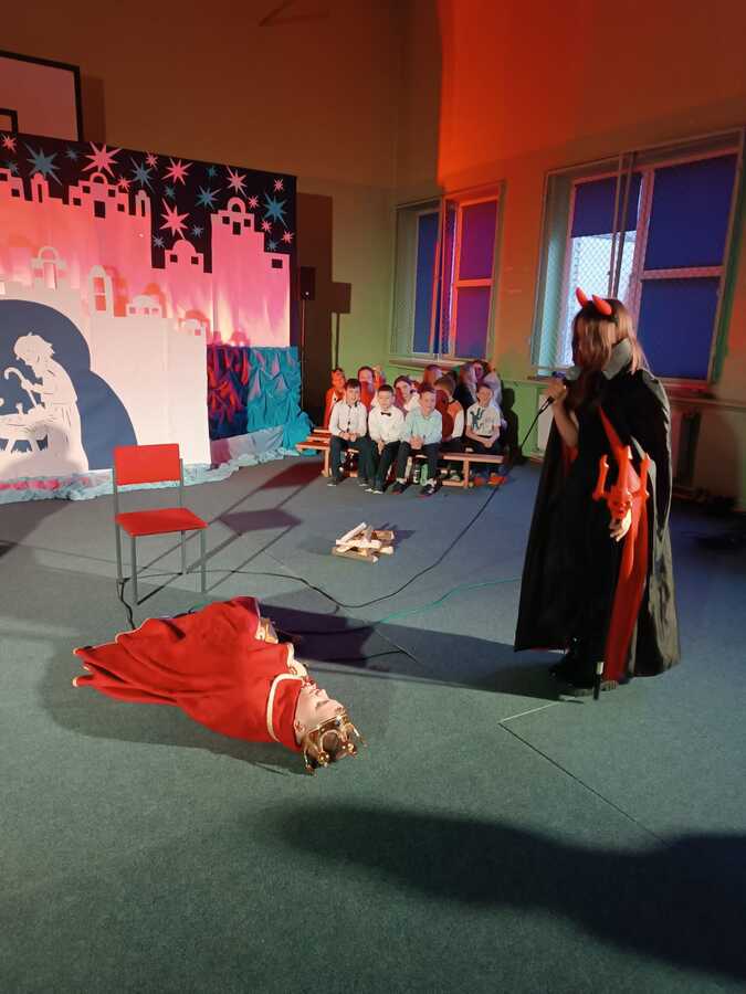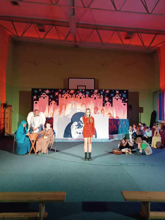 Następnie zanim podzielono się opłatkiem życzenia świąteczne i noworoczne dzieciom oraz wszystkim zgromadzonym złożyli: w imieniu władz samorządowych burmistrz Sławomir Bogucki i przewodniczący Arkadiusz Włodarski oraz kierownik Ośrodka Pomocy Społecznej Alicja Wójcik wraz z pracownikiem Natalią Kuczyńską a także dyrektor Biblioteki i Ośrodka Kultury Przemysław Wawrzyniak. Pogratulowali oni również młodym aktorom i podziękowali za chwile pięknych wzruszeń oraz przekazali słodkie upominki.