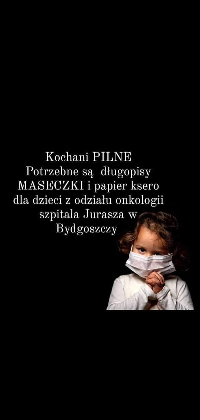 Zwracamy się do Was z ogromną prośbą. Do 30 października organizowana jest zbiórka rzeczy podanych poniżej dla dzieciaczków z bydgoskiej onkologii.